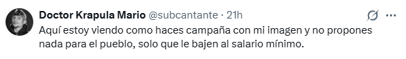 El cantante Mario Muñoz, integrante de la banda Doctor Krápula, manifestó que su imagen estaba siendo utilizada con fines electorales sin que se presentaran propuestas concretas. El candidato respondió enumerando algunas de sus posiciones programáticas, entre ellas la reducción del gasto público y cambios en políticas laborales.