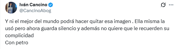 La actriz y cantante Diana Ángel solicitó orientación jurídica sobre la utilización de su imagen en material de campaña. En el intercambio digital intervino el abogado Iván Cancino, quien afirmó que no existiría un mecanismo efectivo para obligar a retirar la publicación de redes sociales.
