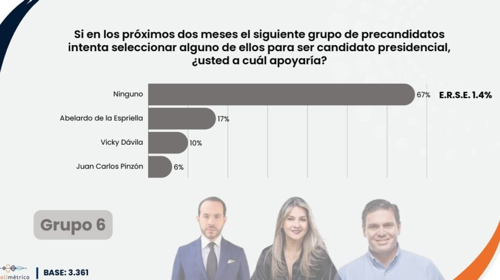 Dentro de los nombres que ingresan por fuera de las estructuras tradicionales, el abogado Abelardo de la Espriella registra el 17% de respaldo, superando a Vicky Dávila con 10% y a Juan Carlos Pinzón con 6%.