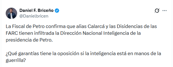 El representante electo Daniel Briceño cuestionó posibles afectaciones a la seguridad de la oposición, luego de referirse a presuntas infiltraciones en organismos estatales. En sus publicaciones planteó interrogantes sobre las garantías para sectores políticos frente a estos hechos.