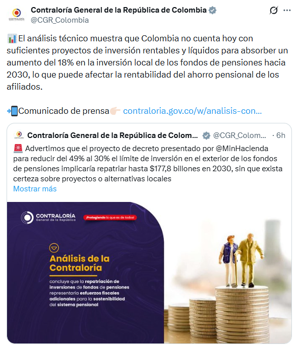 Para la Contraloría, esta diferencia tiene efectos directos sobre el valor de las mesadas pensionales y las devoluciones de saldo que reciben los afiliados. El documento se incorpora así al debate público sobre el proyecto de decreto, que permanece abierto a comentarios hasta el 4 de febrero y cuya definición tendrá implicaciones estructurales para el sistema pensional colombiano.