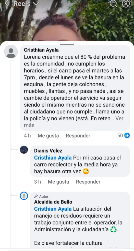 Sin embargo, el debate ha trascendido las oficinas de la Alcaldía. A través de redes sociales, la ciudadanía ha planteado interrogantes que matizan la responsabilidad de Interaseo. Muchos bellanitas cuestionan si la crisis se debe exclusivamente a la ineficiencia operativa o si existe un problema de fondo relacionado con la falta de cultura ciudadana.
