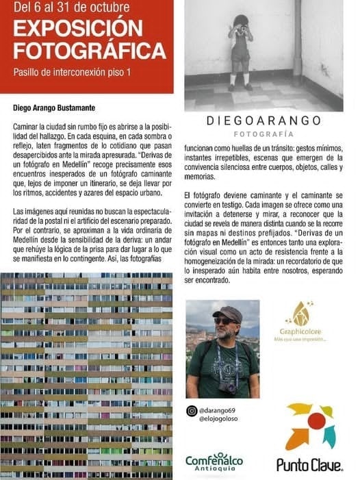 Cada imagen se ofrece como una invitación a detenerse y mirar, a reconocer que la ciudad se revela de manera distinta cuando se la recorre sin mapas ni destinos prefijados. “Derivas de un fotógrafo en Medellín” son entonces tanto una exploración visual como un acto de resistencia frente a la homogeneización de la mirada: un recordatorio de que lo inesperado aún habita entre nosotros, esperando ser encontrado.