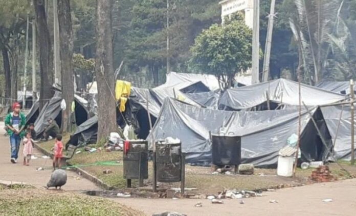 En medio de este grupo se conoció que había aproximadamente 150 menores de edad, lo que generó alertas por las condiciones del espacio: ausencia de agua potable, falta de baños adecuados y la permanente exposición al tránsito vehicular, el clima y otros riesgos propios del espacio público.