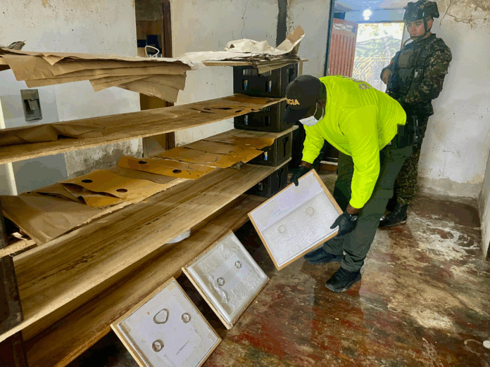 El complejo, ubicado en la vereda Montenegro del municipio de San Luis, operaba con un alto grado de sofisticación. Según informó el Ejército, la estructura clandestina utilizaba una modalidad de camuflaje diseñada para evadir controles, donde impregnaban clorhidrato de cocaína en cajas de cartón destinadas al transporte de banano y piña hacia mercados internacionales, una estrategia que permitía mover cargamentos con bajo riesgo de detección.