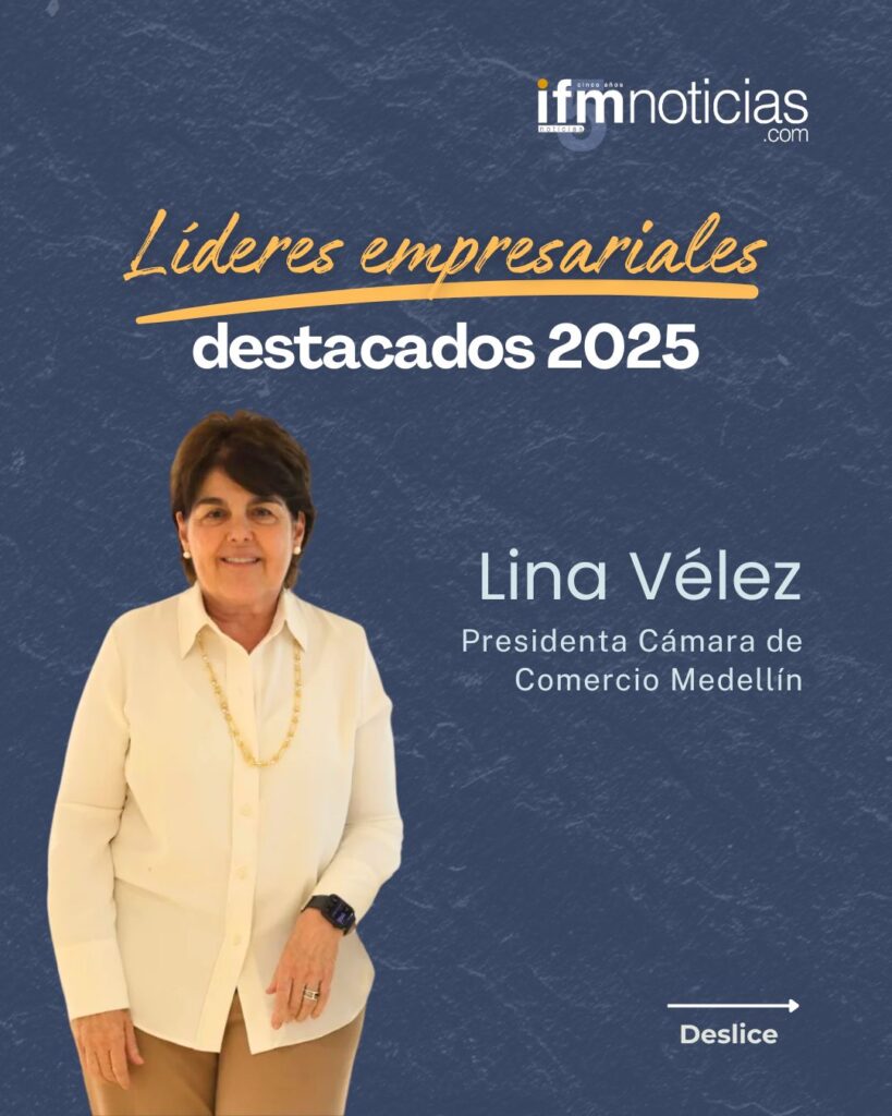 Lina Vélez, presidenta de la Cámara de Comercio de Medellín: Fortalece el ecosistema empresarial local, apoyando la competitividad, la innovación y el desarrollo económico de la región.