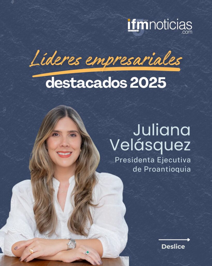 Juliana Velásquez, presidenta de Proantioquia: dirige la articulación de capacidades empresariales, públicas, sociales y académicas, promoviendo el desarrollo sostenible de Antioquia y su impacto positivo en todo Colombia.