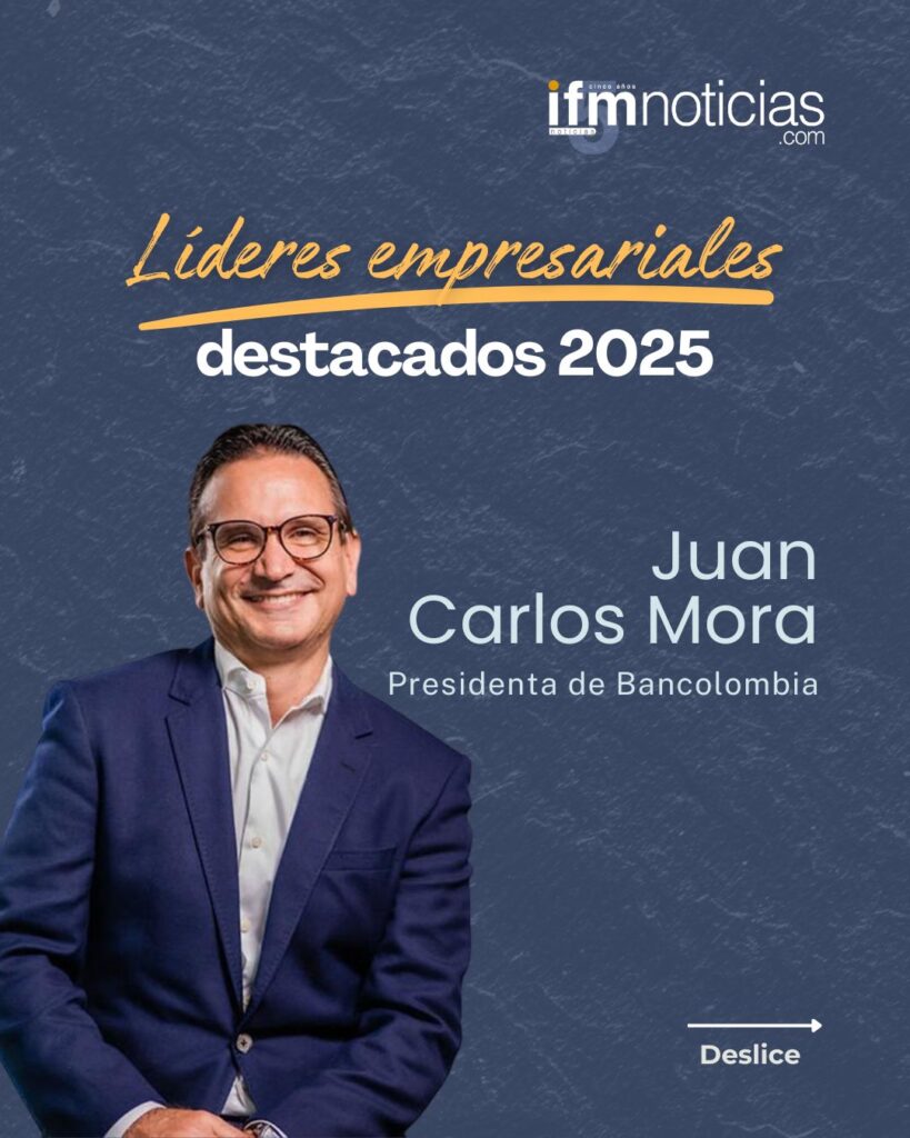 Juan Carlos Mora, presidente de Bancolombia: Ha impulsado la transformación digital y financiera del país, fortaleciendo la inclusión y el acceso a servicios bancarios para millones de colombianos.