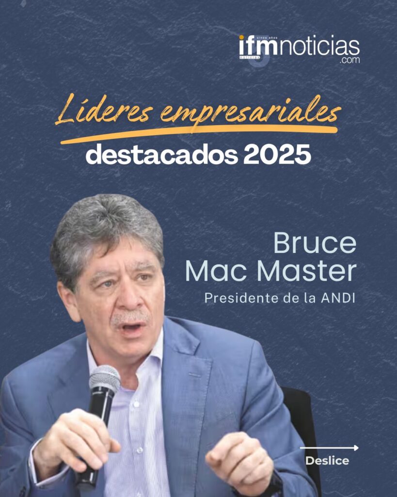 Bruce Mac Master, presidente de ANDI: Promueve el desarrollo empresarial sostenible y la innovación industrial, defendiendo la competitividad y el crecimiento económico del país.