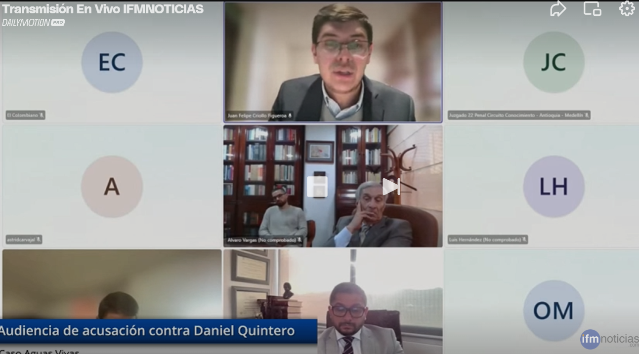 La diligencia se lleva a cabo de manera virtual ante el Juzgado 22 Penal del Circuito de Medellín, marcando con ello el inicio formal de la etapa preparatoria del juicio oral. IFMNOTICIAS está transmitiendo la audiencia en vivo a través del siguiente enlace: