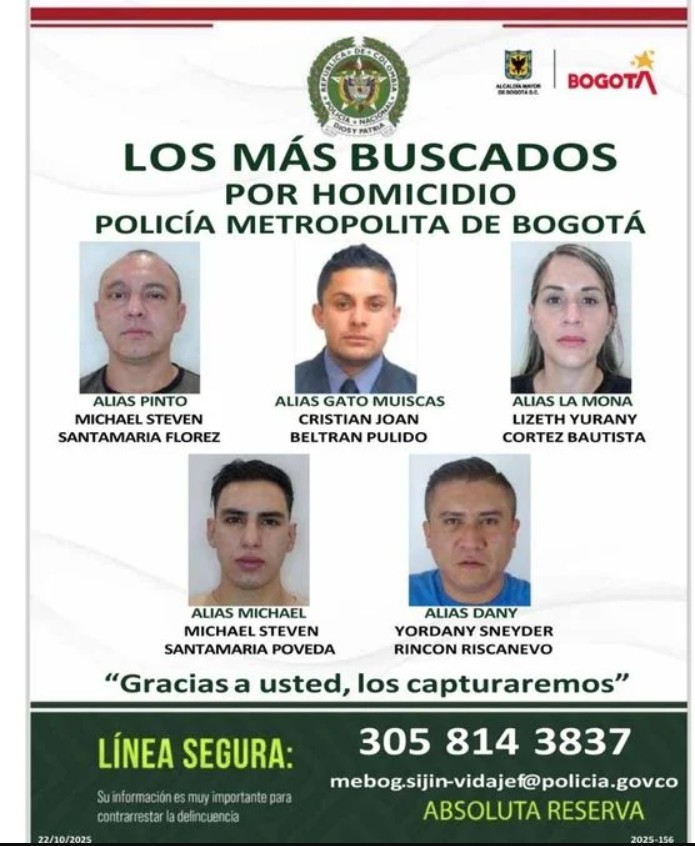 La Policía mantiene activa la búsqueda de los demás señalados y solicitó apoyo ciudadano para ubicar a los presuntos responsables. La institución indicó que la información puede suministrarse de manera reservada a la línea 305 766 9226 o al correo electrónico [email protected].