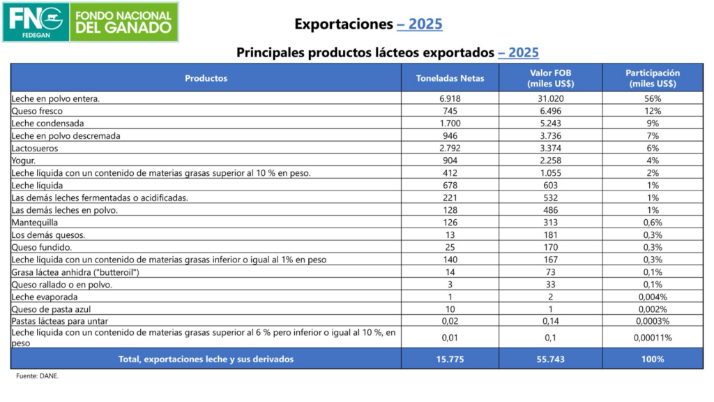 El dirigente gremial explicó que para cumplir con obligaciones laborales, tributarias y regulatorias es fundamental fortalecer tanto el consumo interno como la presencia en mercados internacionales. En ese sentido, destacó la importancia de ampliar la venta de carne, leche, derivados lácteos y animales vivos, no solo en el territorio nacional, sino también en los 29 destinos a los que actualmente llega la producción colombiana.