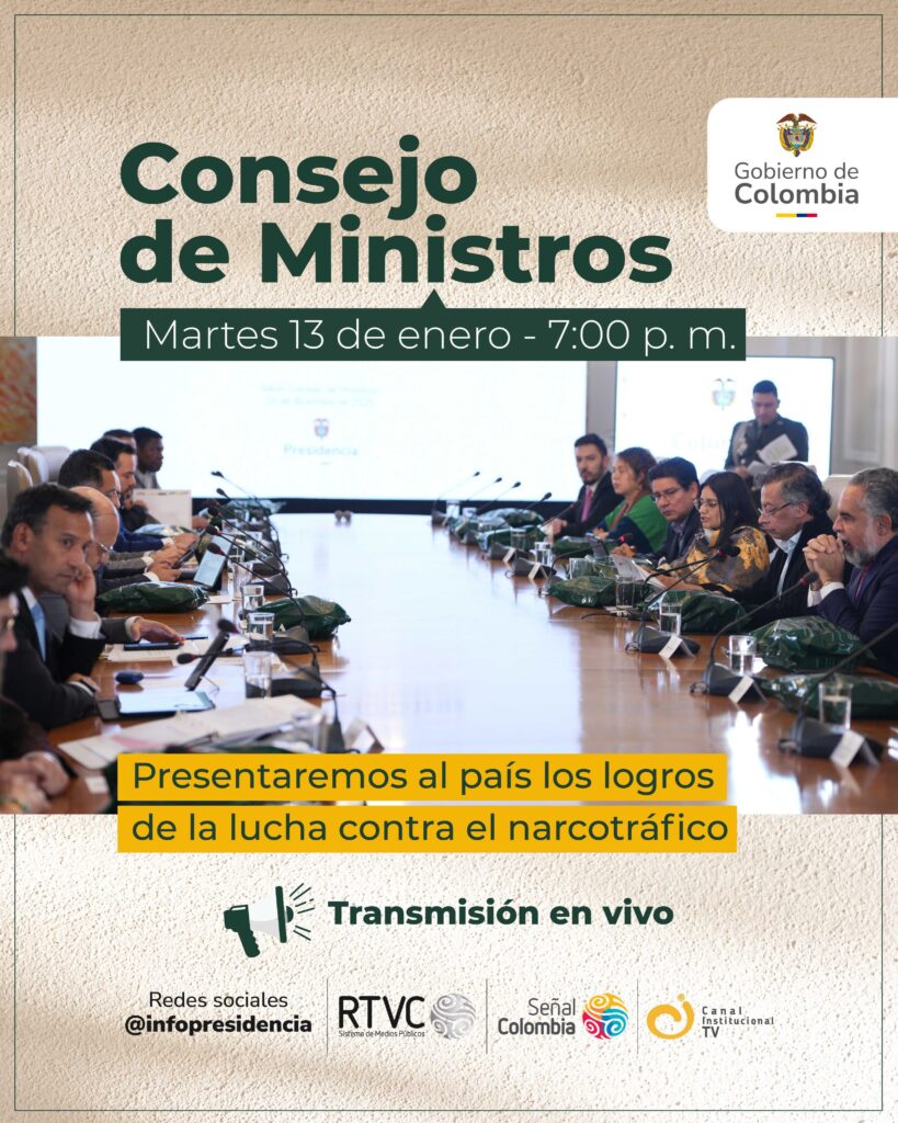 El presidente, Gustavo Petro, liderará este martes 13 de enero, a las 7:00 de la noche, el primer Consejo de Ministros de 2026. La sesión se realizará en la Casa de Nariño y será transmitida en directo a través de los canales públicos y las plataformas oficiales del Gobierno, según la información divulgada por Presidencia.