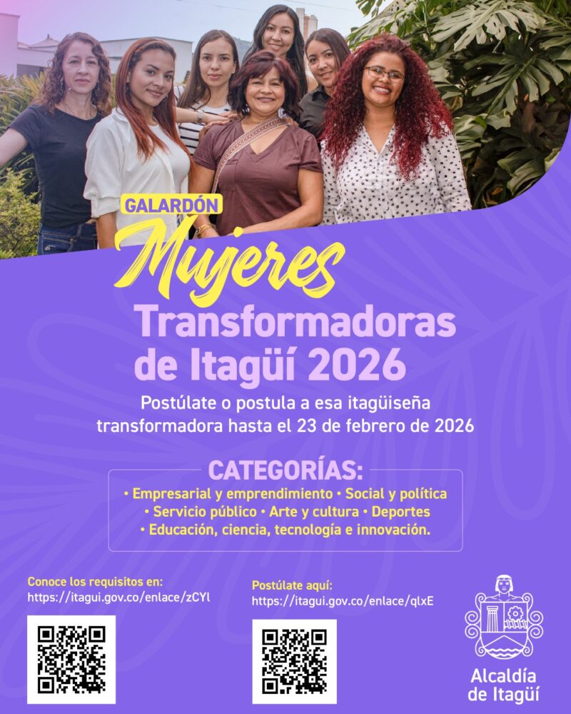 Con el objetivo de destacar la trayectoria y aportes de mujeres del municipio de Itagüí en distintos ámbitos sociales, la administración abrió la convocatoria para los galardones “Mujeres Transformadoras 2026”.