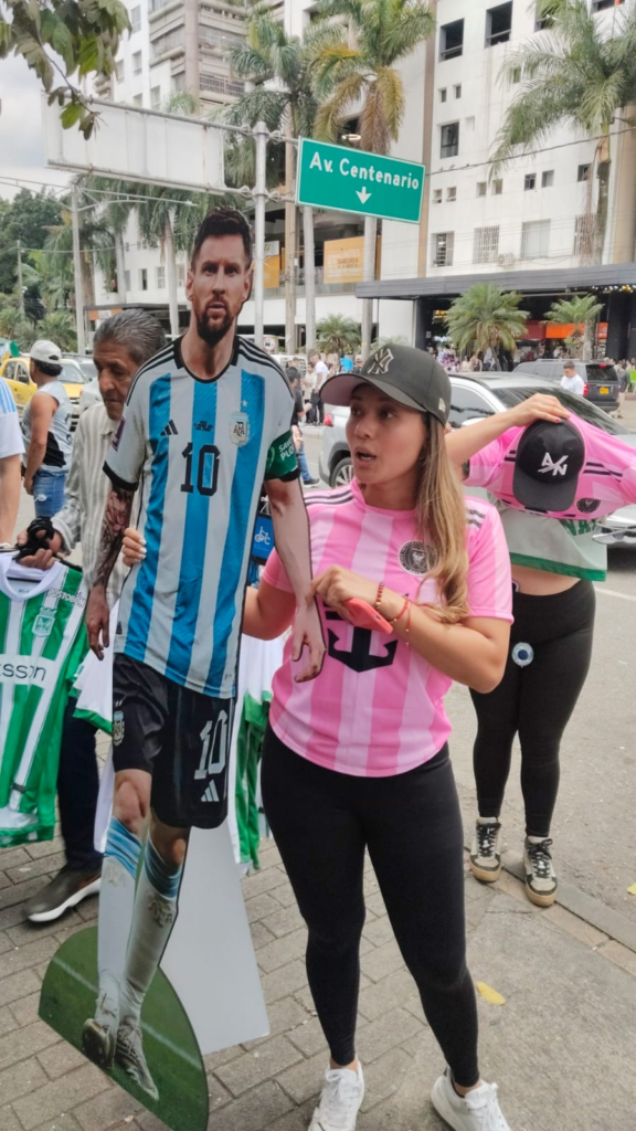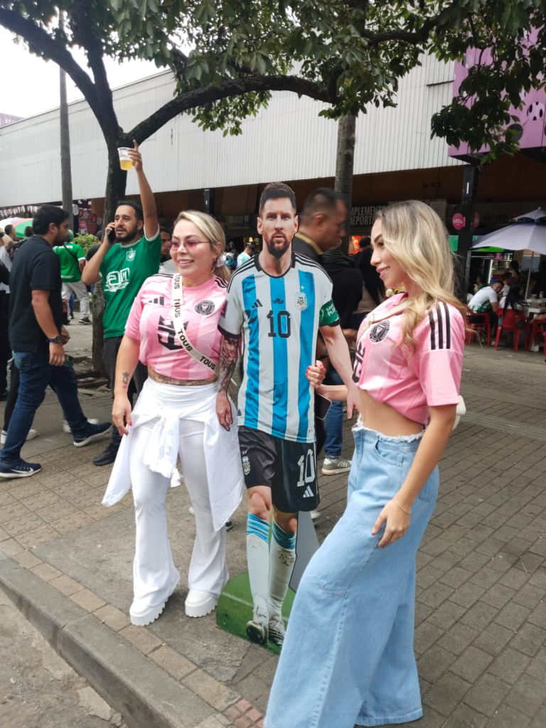 Con la figura bajo el brazo, se instalaron en las inmediaciones del estadio donde miles de hinchas hacían filas interminables bajo el sol medellinense. Allí, entre sol y el bullicio de la previa, el «Lio de cartón» se convirtió en la estrella inesperada. Por tan solo 5.000 pesos, cualquier transeúnte podía cumplir el sueño —o al menos la ilusión óptica— de posar junto al ídolo rosarino.