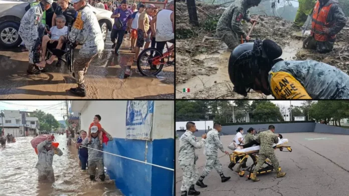 La presidenta Claudia Sheinbaum anunció que visitará personalmente las zonas más golpeadas y que “a nadie se le dejará desamparado”. En coordinación con los gobernadores, se desplegaron más de 5.400 elementos de rescate, 17 aeronaves, 10 cocinas comunitarias y plantas potabilizadoras para atender a la población. Además, se habilitó la línea 079 para reportar personas desaparecidas y solicitar ayuda.