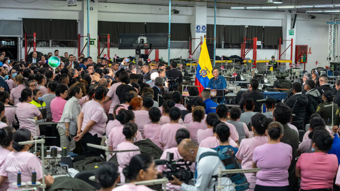 El presidente Gustavo Petro defendió nuevamente la expedición del Decreto 1184, el cual que fijó en 0% el arancel para la importación de insumos y materias primas del sector confecciones, durante un acto realizado en la planta de producción del Fondo Rotatorio de la Policía, donde se reunió con más de 700 trabajadoras del sector.