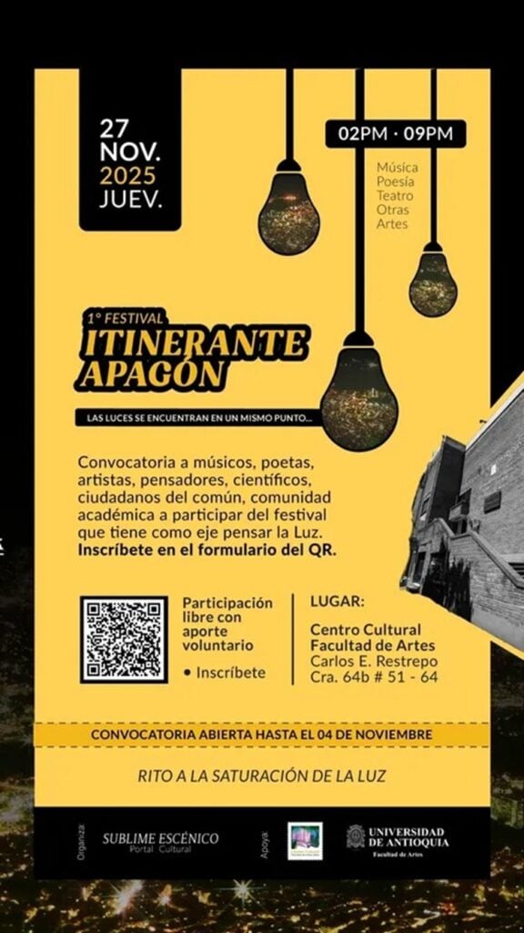Mi posición estética, desde mi ser “radioactivo” y con el colectivo Sublime Escénico, es manifestar a este tiempo con teatro y poesía que hay una ceguera colectiva de saturación de luz, una movilización irrefrenable de vivir para producir nuestros recursos; una bomba informática que sigue incrementando y con la que hoy el Estado Mayor control sobre los cuerpos humanos; El exceso de reproductividad de pantallas; el cúmulo de basura; la movilización imparable -y excesiva- de automóviles en las ciudades… No hay forma de ver nuestra propia luz interior… Nos movilizamos a toda marcha… no hay cómo detener esta ceguera así mismo y de lo colectivo… cada vez más luces en las ciudades… la peste lumínica es una necesidad colectiva, administrada, controlada de la aldea global, cada vez más diversa y la homogeneidad. La peste lumínica es un manifiesto estético que hemos nombrado en La Misa de la Poesía patafísica y la obra de teatro “El bombillo y la ventana”.