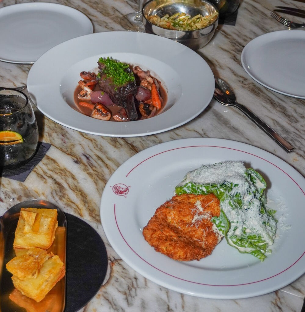 El diseño del espacio responde a la intención de recrear la atmósfera de pequeños restaurantes tradicionales de ciudades como París, Roma o Madrid. El lugar cuenta con mesas de mármol, sillas de terciopelo, servilletas de tela, copas de cristal y espejos ahumados, elementos que construyen un entorno pensado para la permanencia y la conversación. La ambientación se completa con una selección de música suave, que acompaña la experiencia sin imponerse.