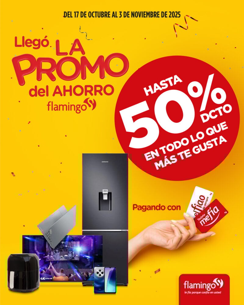 Esta temporada especial busca que las familias de Medellín y todo el país puedan equipar su hogar, renovar su tecnología y actualizar su estilo con condiciones favorables. En el marco de la campaña, Flamingo ofrece rebajas de hasta el 50% en artículos de electrodomésticos, celulares, televisores, muebles, hogar y moda. Sin embargo, las ofertas están sujetas a vigencia, inventario disponible y a los medios de pago seleccionados, además de incluir bonos redimibles o ruletas de descuento en fechas específicas.